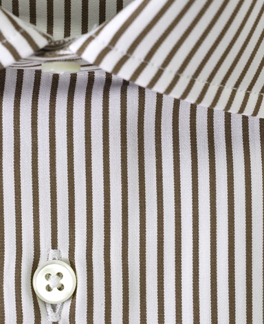■襟の表裏のパターンに差をつけ、コンパクトかつ構築的な襟を実現。品の良いドレスシャツの証である、首に巻きつくような内巻きフォルムは、匠によるいせ込み技術の成果です。