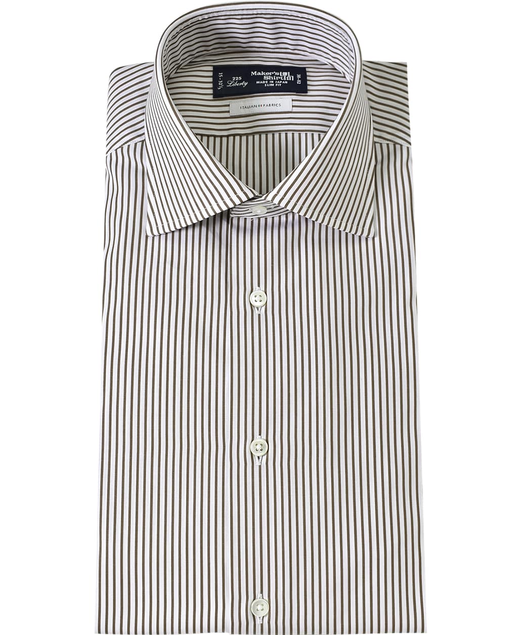 通常針目は3cmに18針以上で高級とされていますが、私たちのシャツは21針で縫い上げられています。また、耐久性に優れた「巻き伏せ本縫い」でシャツを仕立てています。