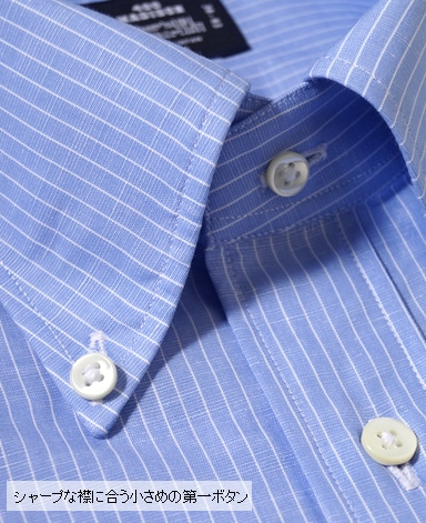 ■第一ボタンには、シャープな襟に合う小さめの9mmボタンを使用。