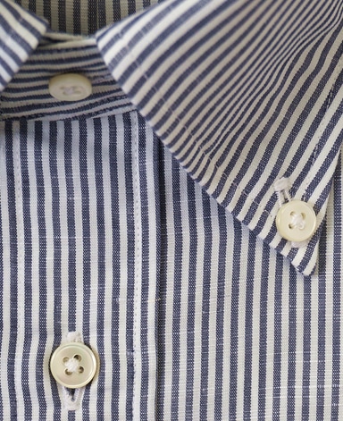 ■襟の表裏のパターンに差をつけ、コンパクトかつ構築的な襟を実現。品の良いドレスシャツの証である、首に巻きつくような内巻きフォルムは、匠によるいせ込み技術の成果です。