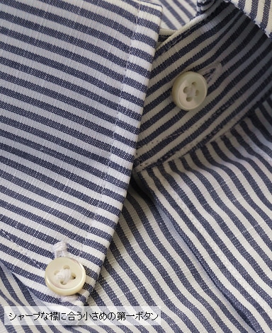 ■第一ボタンには、シャープな襟に合う小さめの9mmボタンを使用。