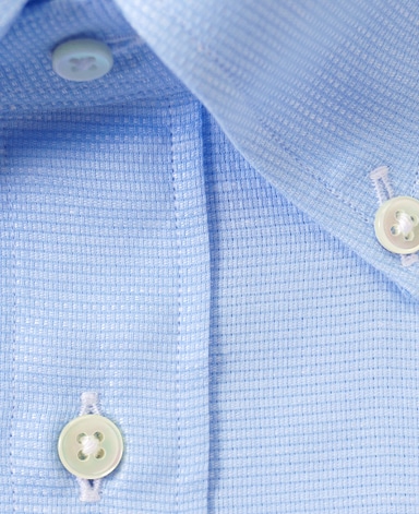 ■襟の表裏のパターンに差をつけ、コンパクトかつ構築的な襟を実現。品の良いドレスシャツの証である、首に巻きつくような内巻きフォルムは、匠によるいせ込み技術の成果です。