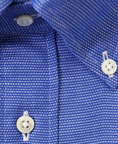■襟の表裏のパターンに差をつけ、コンパクトかつ構築的な襟を実現。品の良いドレスシャツの証である、首に巻きつくような内巻きフォルムは、匠によるいせ込み技術の成果です。