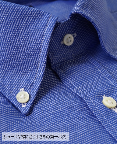 ■第一ボタンには、シャープな襟に合う小さめの9mmボタンを使用。