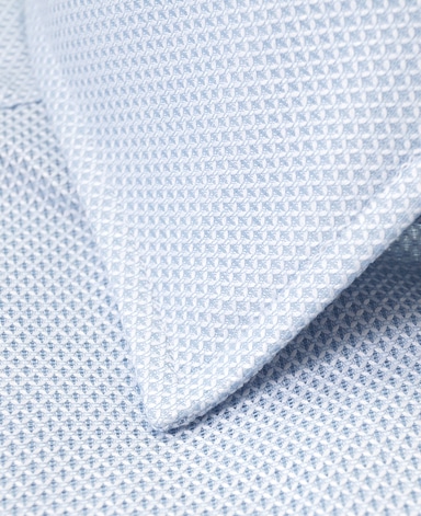 ■襟の表裏のパターンに差をつけ、コンパクトかつ構築的な襟を実現。品の良いドレスシャツの証である、首に巻きつくような内巻きフォルムは、匠によるいせ込み技術の成果です。