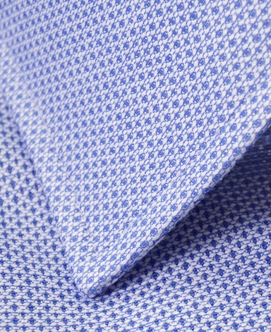 ■襟の表裏のパターンに差をつけ、コンパクトかつ構築的な襟を実現。品の良いドレスシャツの証である、首に巻きつくような内巻きフォルムは、匠によるいせ込み技術の成果です。