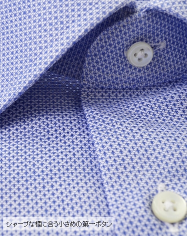 ■第一ボタンには、シャープな襟に合う小さめの9mmボタンを使用。