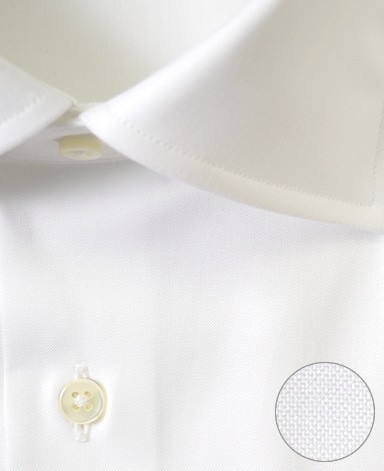 ■襟の表裏のパターンに差をつけ、コンパクトかつ構築的な襟を実現。品の良いドレスシャツの証である、首に巻きつくような内巻きフォルムは、匠によるいせ込み技術の成果です。