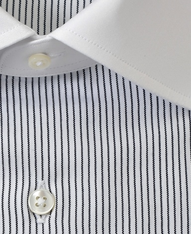 通常針目は3cmに18針以上で高級とされていますが、私たちのシャツは21針で縫い上げられています。また、耐久性に優れた「巻き伏せ本縫い」でシャツを仕立てています。