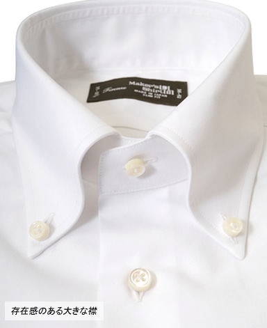 通常のシャツより襟にボリュームが出て、襟元に新しい表情を見せてくれる。
