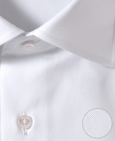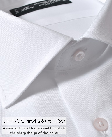 ■襟の表裏のパターンに差をつけ、コンパクトかつ構築的な襟を実現。品の良いドレスシャツの証である、首に巻きつくような内巻きフォルムは、匠によるいせ込み技術の成果です。