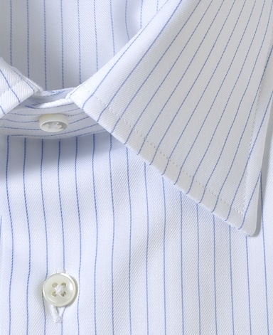 ■襟の表裏のパターンに差をつけ、コンパクトかつ構築的な襟を実現。品の良いドレスシャツの証である、首に巻きつくような内巻きフォルムは、匠によるいせ込み技術の成果です。