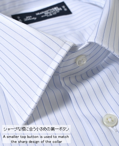 通常針目は3cmに18針以上で高級とされていますが、私たちのシャツは21針で縫い上げられています。また、耐久性に優れた「巻き伏せ本縫い」でシャツを仕立てています。