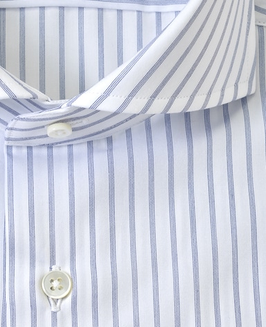 通常針目は3cmに18針以上で高級とされていますが、私たちのシャツは21針で縫い上げられています。また、耐久性に優れた「巻き伏せ本縫い」でシャツを仕立てています。