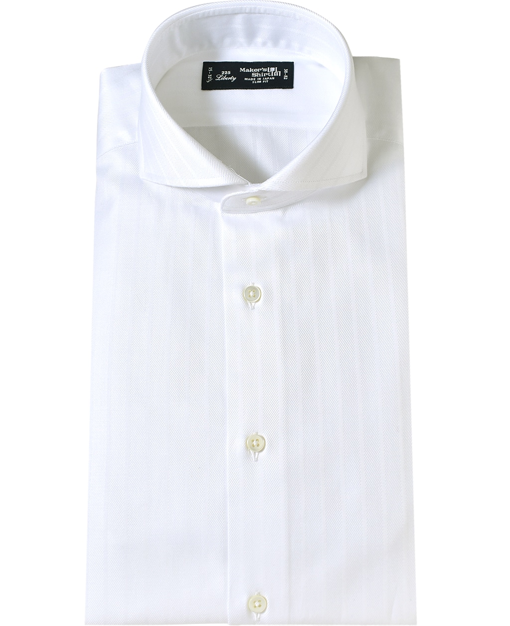 通常針目は3cmに18針以上で高級とされていますが、私たちのシャツは21針で縫い上げられています。また、耐久性に優れた「巻き伏せ本縫い」でシャツを仕立てています。