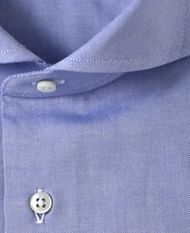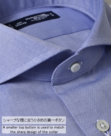 ■襟の表裏のパターンに差をつけ、コンパクトかつ構築的な襟を実現。品の良いドレスシャツの証である、首に巻きつくような内巻きフォルムは、匠によるいせ込み技術の成果です。