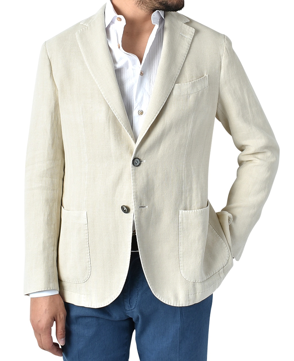 リネンコットン素材のヘリンボーンジャケットが登場。
