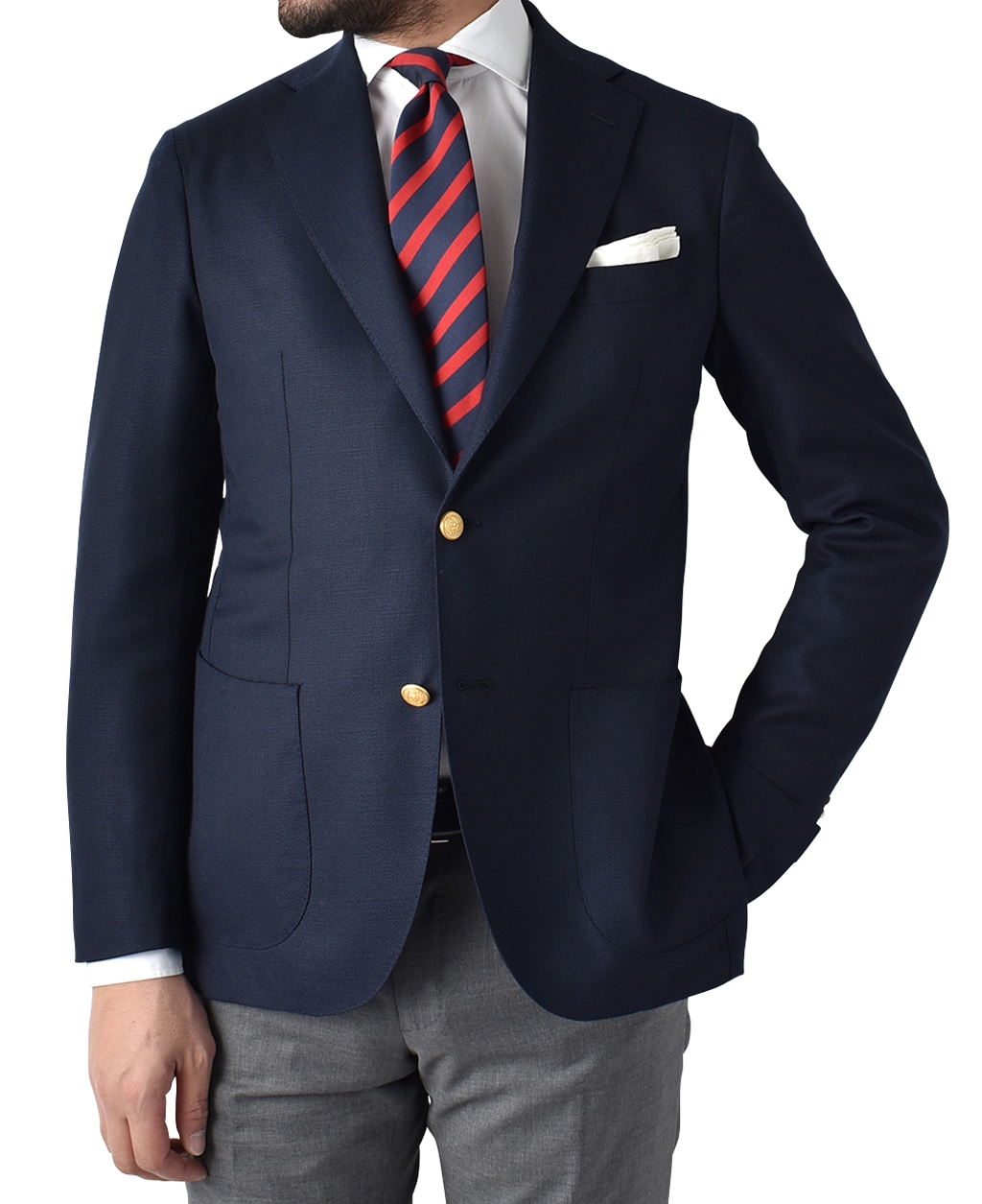 イタリアで作製されたこのジャケットは、ナチュラルショルダーで柔らかい雰囲気を持つ、