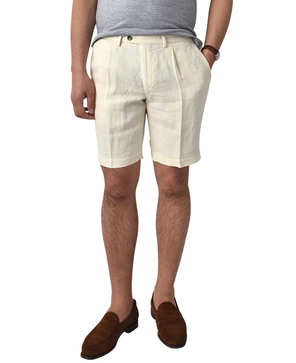 リネン素材を採用したショートパンツが登場。注目の1プリーツ仕様を取り入れ、リラックス感も抜群。