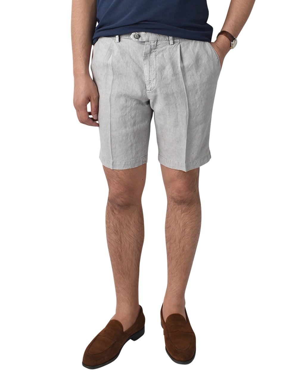 リネン素材を採用したショートパンツが登場。注目の1プリーツ仕様を取り入れ、リラックス感も抜群。