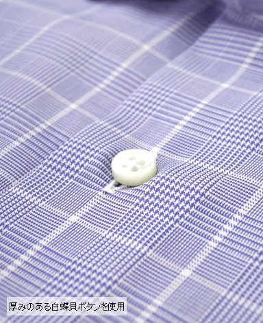 天然白蝶貝使用。その輝きは天然貝の最高級品として世界の高級ドレスシャツに使用されています。