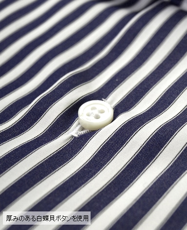 天然白蝶貝使用。その輝きは天然貝の最高級品として世界の高級ドレスシャツに使用されています。
