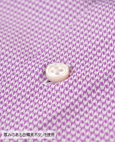 天然白蝶貝使用。その輝きは天然貝の最高級品として世界の高級ドレスシャツに使用されています。