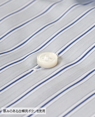 天然白蝶貝使用。その輝きは天然貝の最高級品として世界の高級ドレスシャツに使用されています。