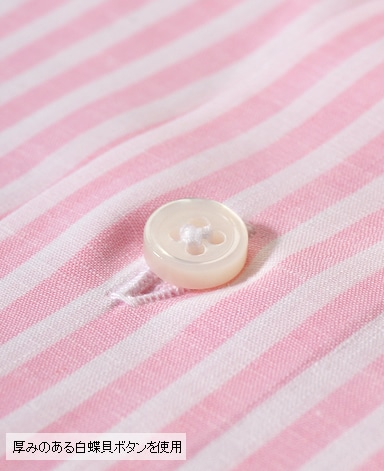 天然白蝶貝使用。その輝きは天然貝の最高級品として世界の高級ドレスシャツに使用されています。