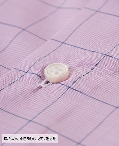 天然白蝶貝使用。その輝きは天然貝の最高級品として世界の高級ドレスシャツに使用されています。