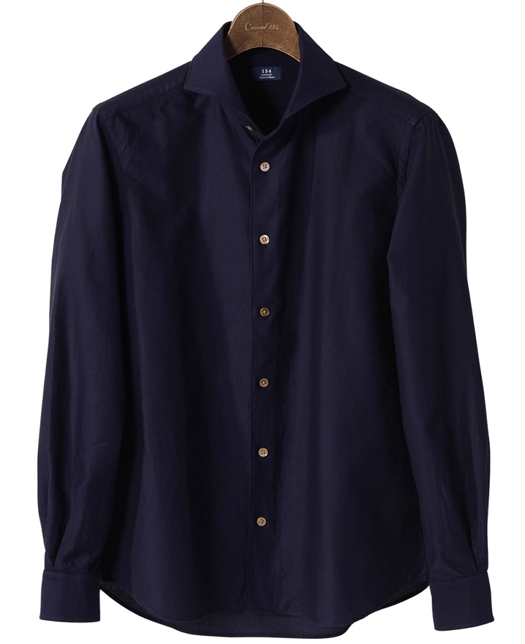 カジュアル134シャツより新しいシルエットが誕生。ウエストをシェイプしバックスタイルを背ダーツ仕様にすることですっきりとしたデザインになりました。