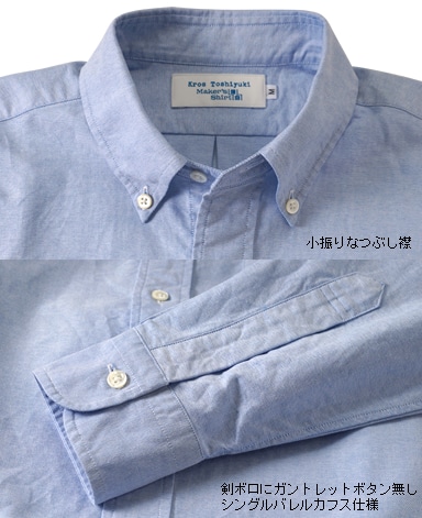■色:ブルー「KROS TOSHIYUKI」のB.D.についてあえて能書きは並べ立てません。 60年代のハートを最新のテクノロジーで形にした最高、最良のシャツ。手にした瞬間、あなたを「熱い思い」が包み込むことでしょう。