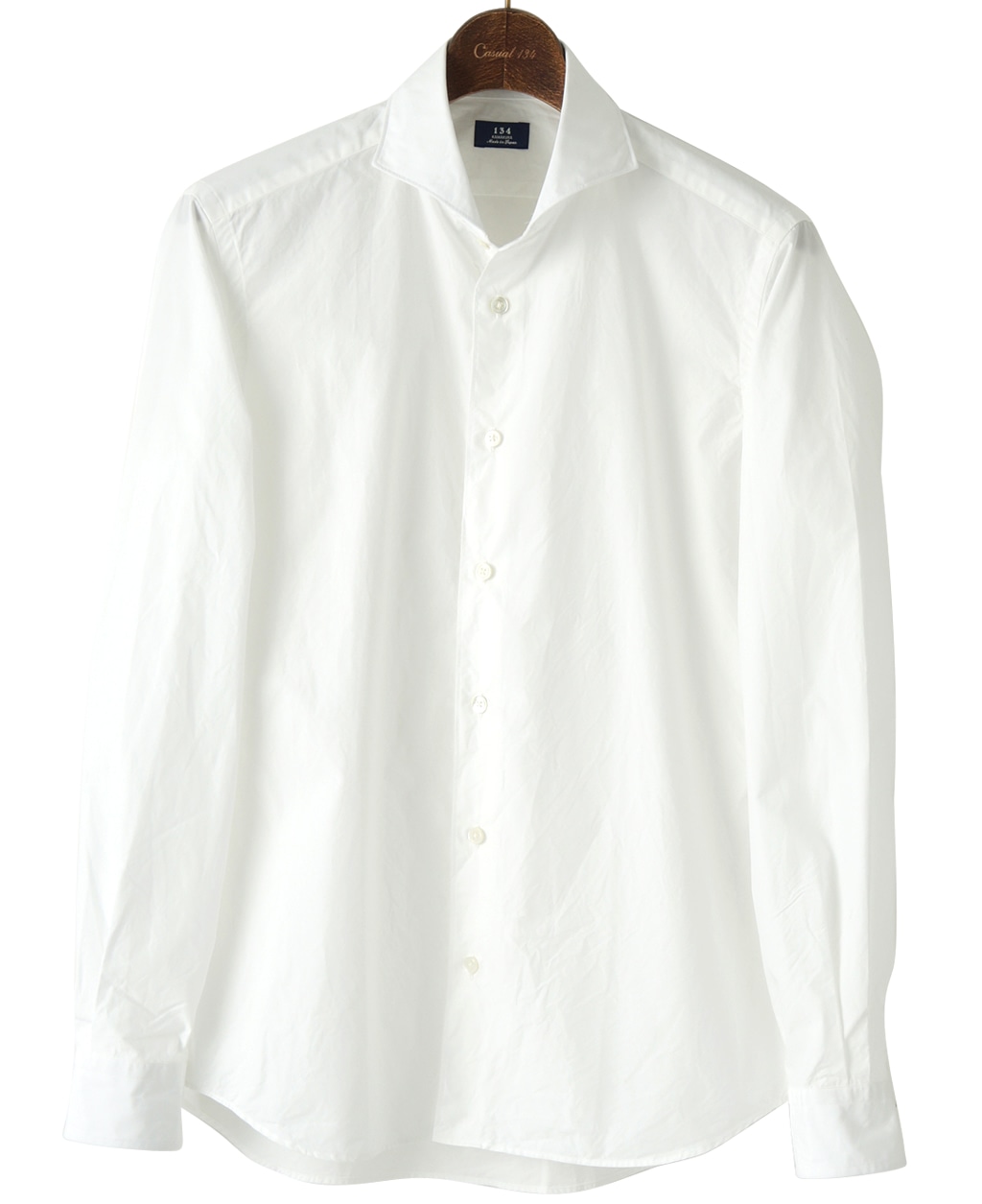 カジュアル134シャツより新しいシルエットが誕生。ウエストをシェイプしバックスタイルを背ダーツ仕様にすることですっきりとしたデザインになりました。