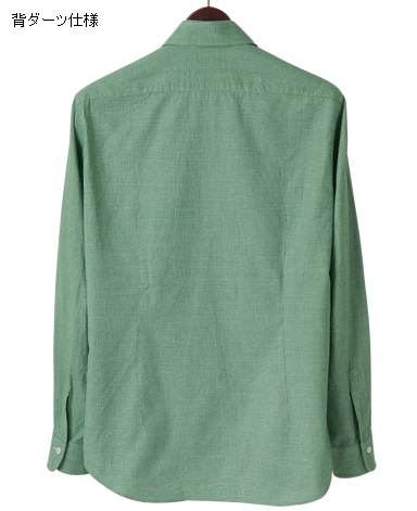 カジュアル134シャツより新しいシルエットが誕生。ウエストをシェイプしバックスタイルを背ダーツ仕様にすることですっきりとしたデザインになりました。