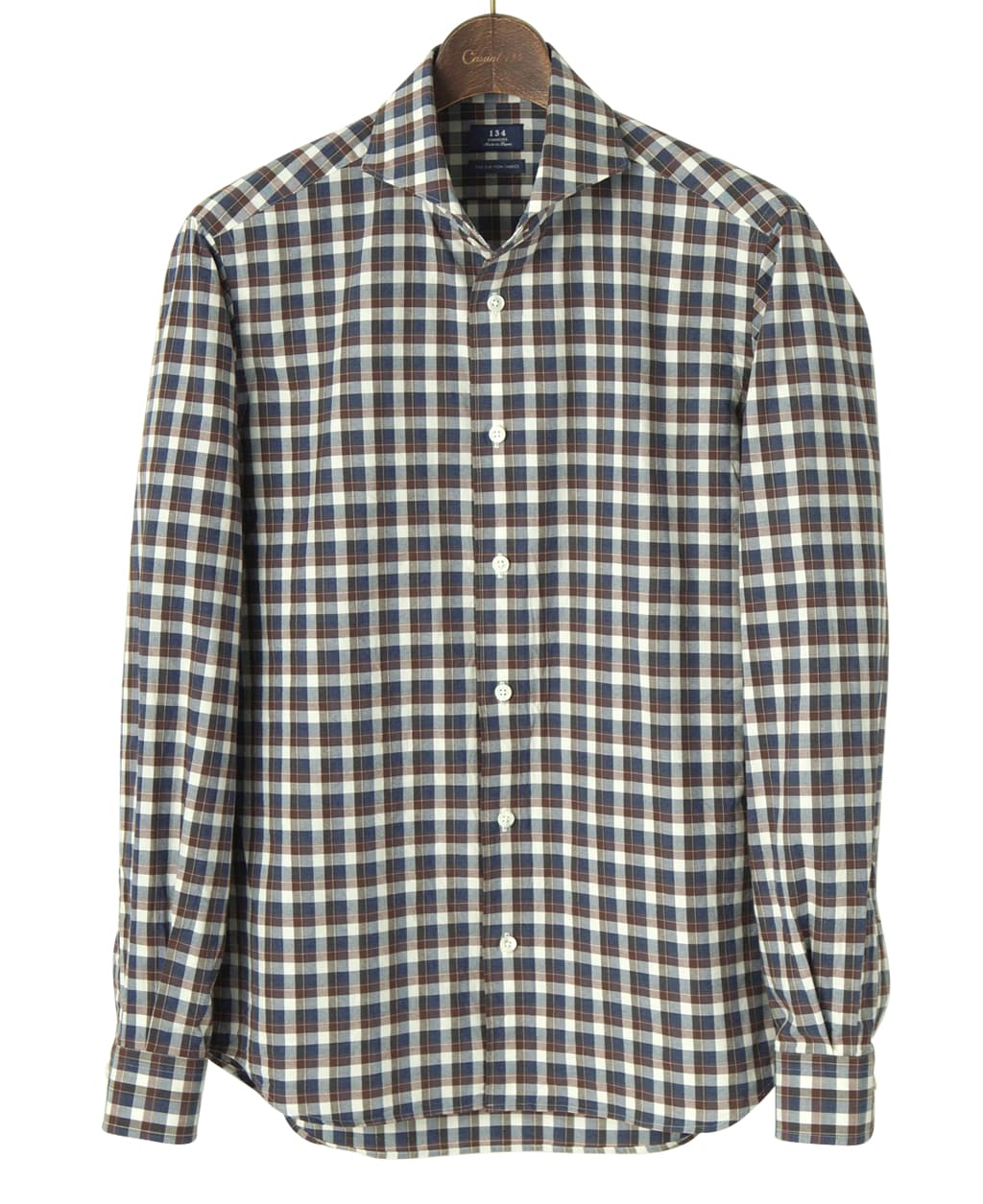コーディネートをお楽しみいただけるオーバー・チェック柄(インポート生地)のカジュアルシャツ。