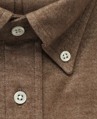 襟とカフスの芯地は接着剤で固めず、首と手首に優しくフィットするよう綿のフラシ芯を使用しています。