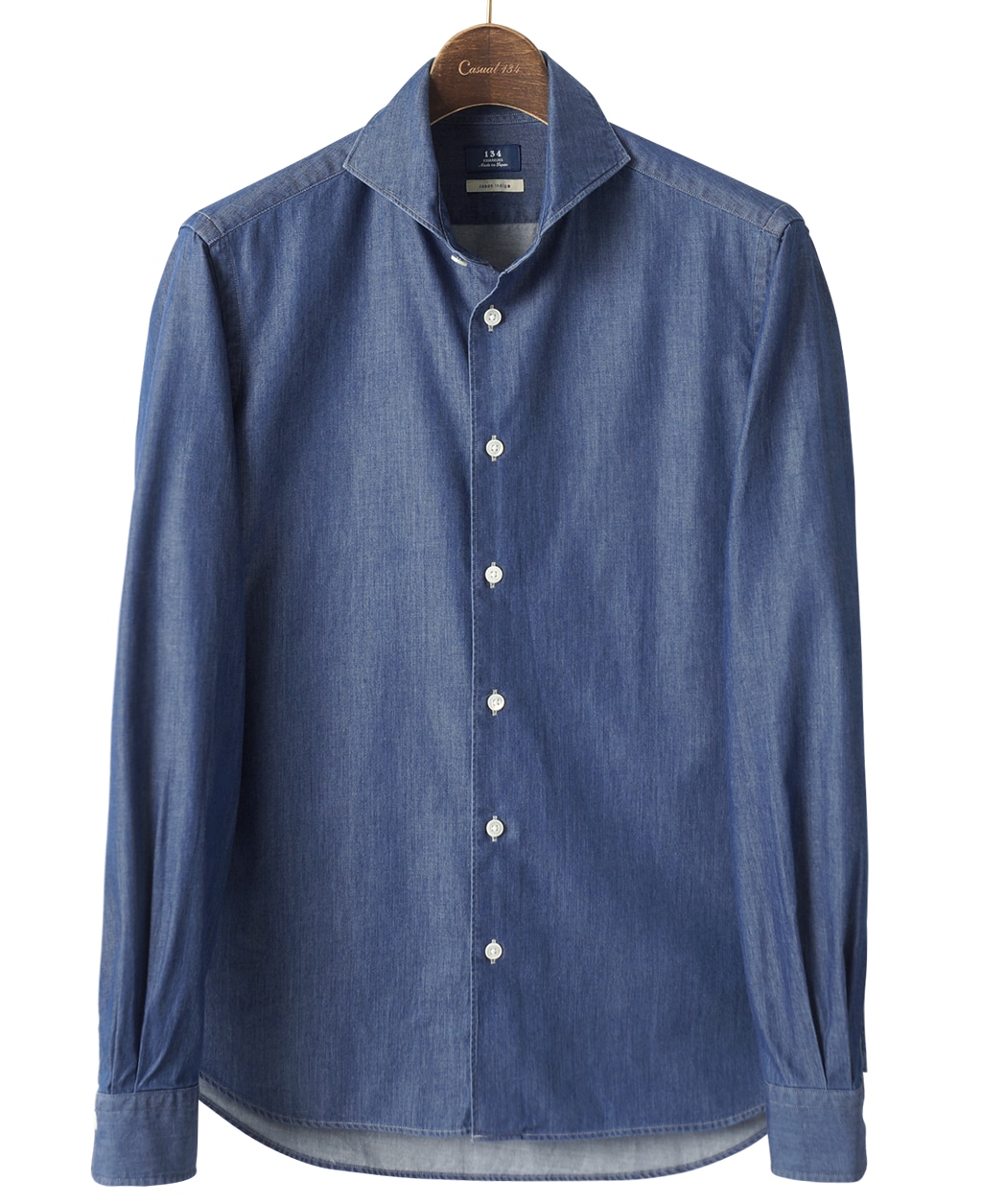 カジュアル134シャツより新しいシルエットが誕生。ウエストをシェイプしバックスタイルを背ダーツ仕様にすることですっきりとしたデザインになりました。