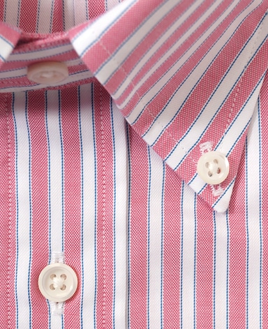 通常針目は3cmに18針以上で高級とされていますが、私たちのシャツは21針で縫い上げられています。また、耐久性に優れた「巻き伏せ本縫い」でシャツを仕立てています。