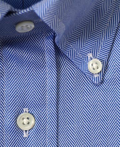 通常針目は3cmに18針以上で高級とされていますが、私たちのシャツは21針で縫い上げられています。また、耐久性に優れた「巻き伏せ本縫い」でシャツを仕立てています。