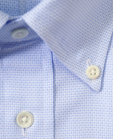 通常針目は3cmに18針以上で高級とされていますが、私たちのシャツは21針で縫い上げられています。また、耐久性に優れた「巻き伏せ本縫い」でシャツを仕立てています。