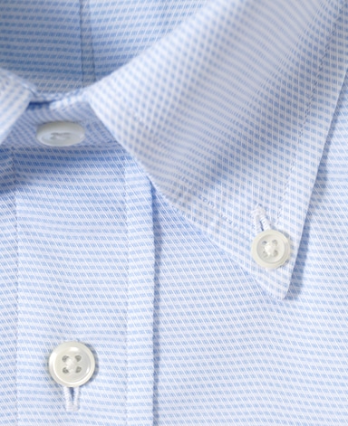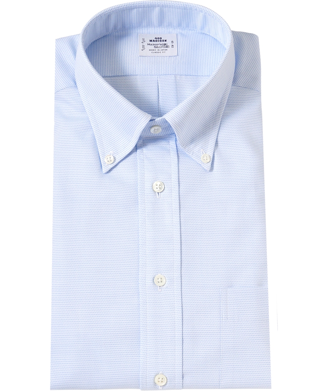 通常針目は3cmに18針以上で高級とされていますが、私たちのシャツは21針で縫い上げられています。また、耐久性に優れた「巻き伏せ本縫い」でシャツを仕立てています。