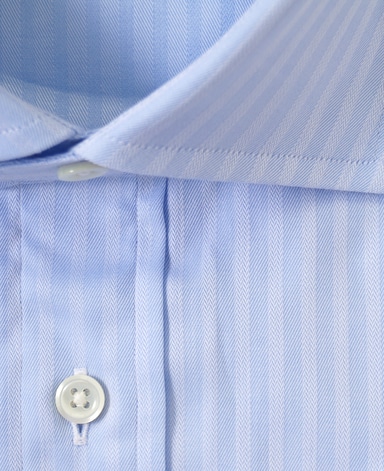 通常針目は3cmに18針以上で高級とされていますが、私たちのシャツは21針で縫い上げられています。また、耐久性に優れた「巻き伏せ本縫い」でシャツを仕立てています。