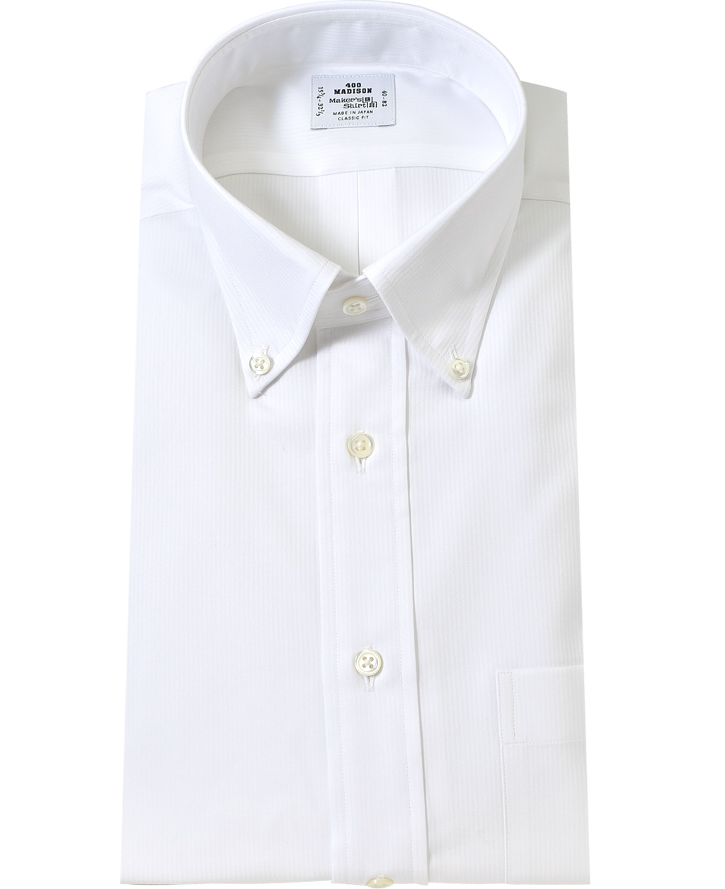 通常針目は3cmに18針以上で高級とされていますが、私たちのシャツは21針で縫い上げられています。また、耐久性に優れた「巻き伏せ本縫い」でシャツを仕立てています。