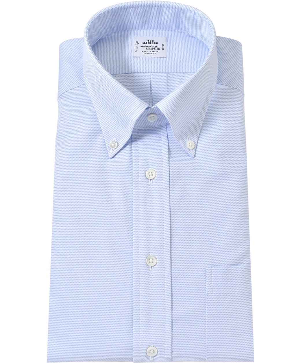 通常針目は3cmに18針以上で高級とされていますが、私たちのシャツは21針で縫い上げられています。また、耐久性に優れた「巻き伏せ本縫い」でシャツを仕立てています。