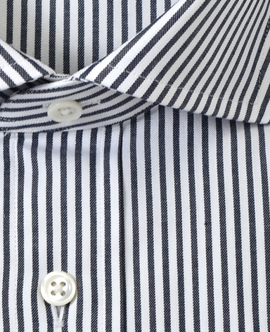 通常針目は3cmに18針以上で高級とされていますが、私たちのシャツは21針で縫い上げられています。また、耐久性に優れた「巻き伏せ本縫い」でシャツを仕立てています。