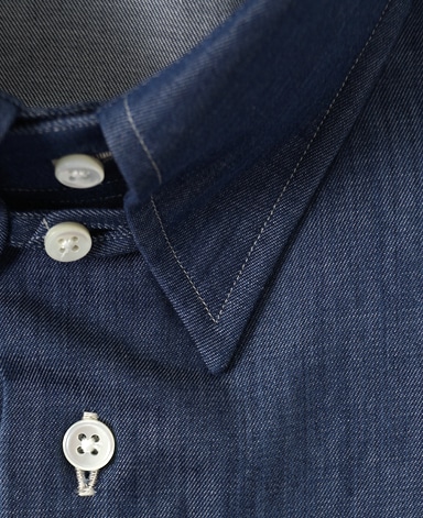 通常針目は3cmに18針以上で高級とされていますが、私たちのシャツは21針で縫い上げられています。また、耐久性に優れた「巻き伏せ本縫い」でシャツを仕立てています。