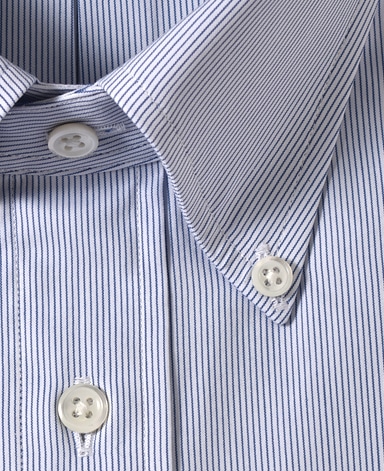 通常針目は3cmに18針以上で高級とされていますが、私たちのシャツは21針で縫い上げられています。また、耐久性に優れた「巻き伏せ本縫い」でシャツを仕立てています。