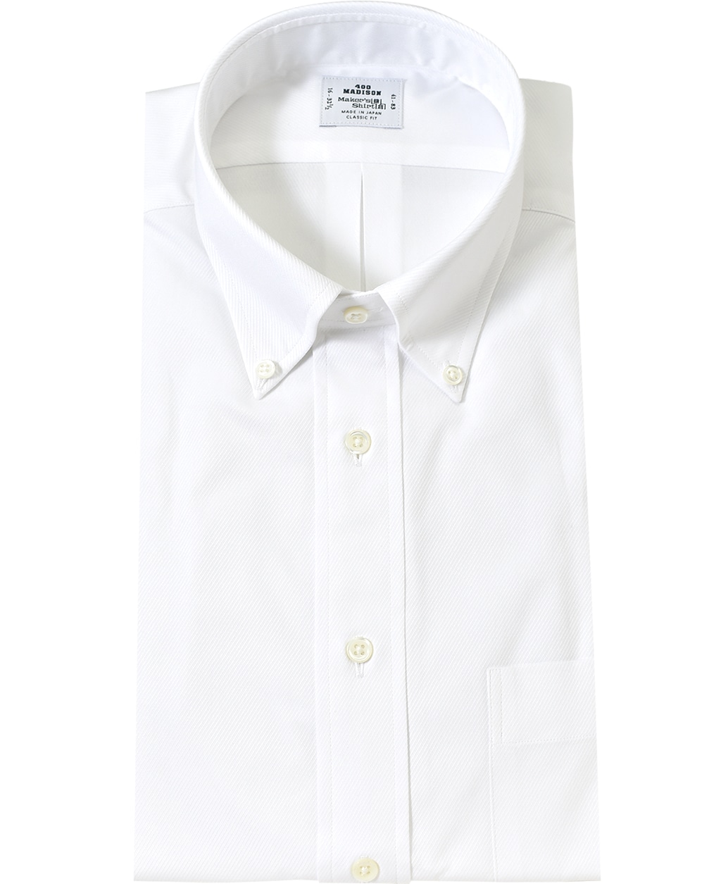 通常針目は3cmに18針以上で高級とされていますが、私たちのシャツは21針で縫い上げられています。また、耐久性に優れた「巻き伏せ本縫い」でシャツを仕立てています。