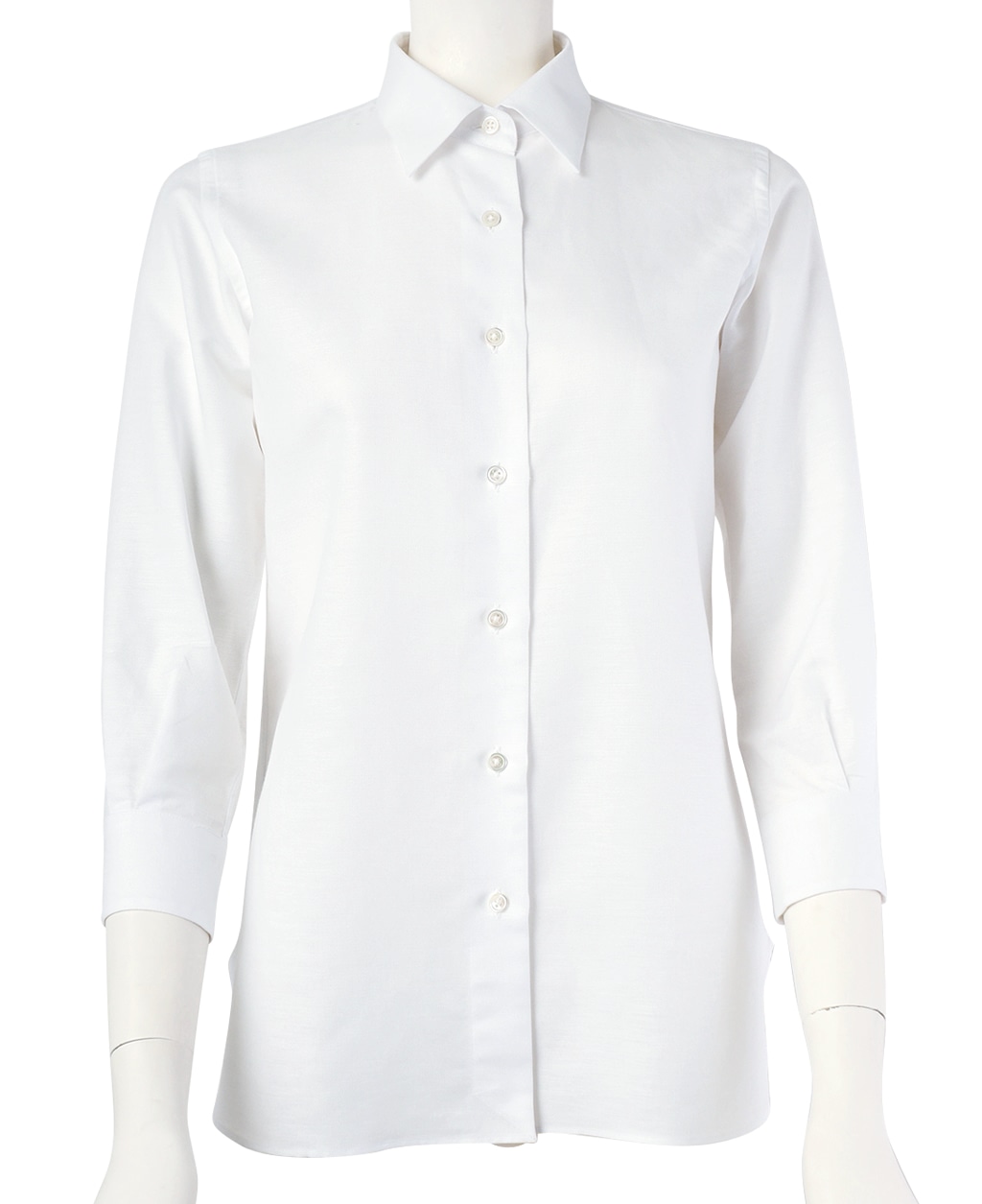 手首がスッキリ見える七分袖のベーシックシャツは、ワードローブに加えたいマストアイテムです。
