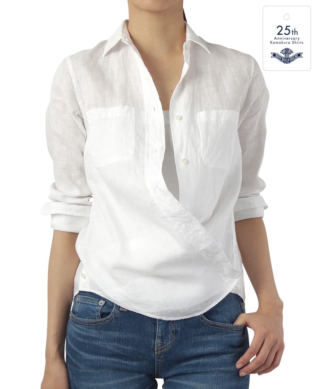 シンプルなシャツとして綺麗めパンツと合わせてオフィススタイルに、